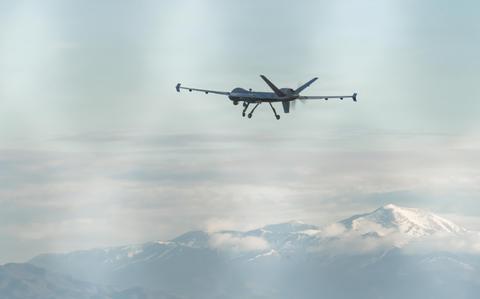 An MQ-9 Reaper assigned to the 29th Attack Squadron takes off during a routine training flight over Holloman Air Force Base, New Mexico, Feb. 11, 2026. (Ryan Witkop/U.S. Air Force)