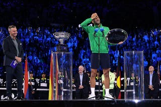 After the electric comebacks, the magical shot-making, and the passion, belief and smile that had defined his remarkable ascent, this was the moment where Carlos Alcaraz took the step from generational talent to stand in the pantheon of the greatest tennis players of all time. As Novak Djokovic sensed his opportunity to make history, Alcaraz wrote his own: by winning his first Australian Open title, overturning Djokovic to win 2-6, 6-2, 6-3, 7-5 and under enormous pressure, Alcaraz becomes the youngest man of all time to complete the career grand slam at 22 years and 272 days.