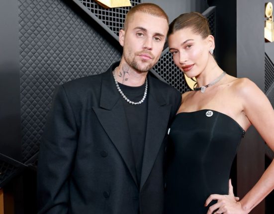No, she seems really happy. Photo: Kevin Mazur/Getty Images for The Justin Bieber cannot get Hailey off his back. At the 2026 Grammy.