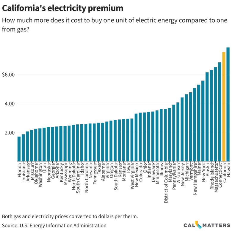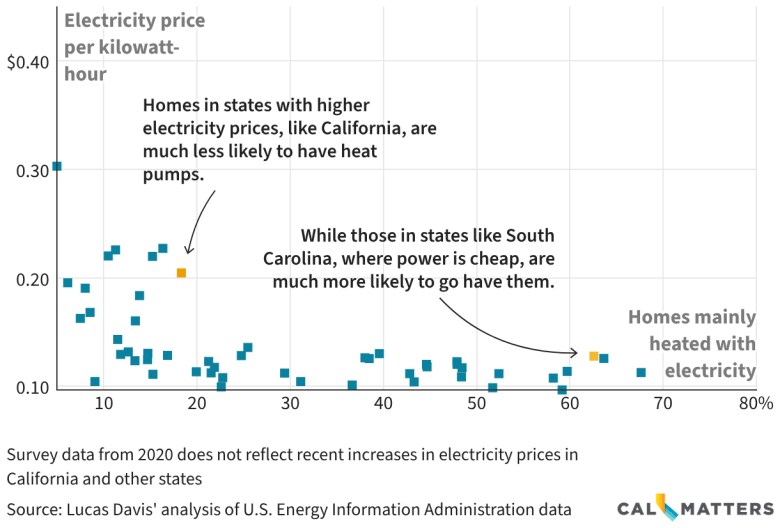 On the other hand, California’s residential electricity prices are among the highest in the country — expensive even compared to its also pricey natural gas. That makes heat pumps a tough sell to many Californians.