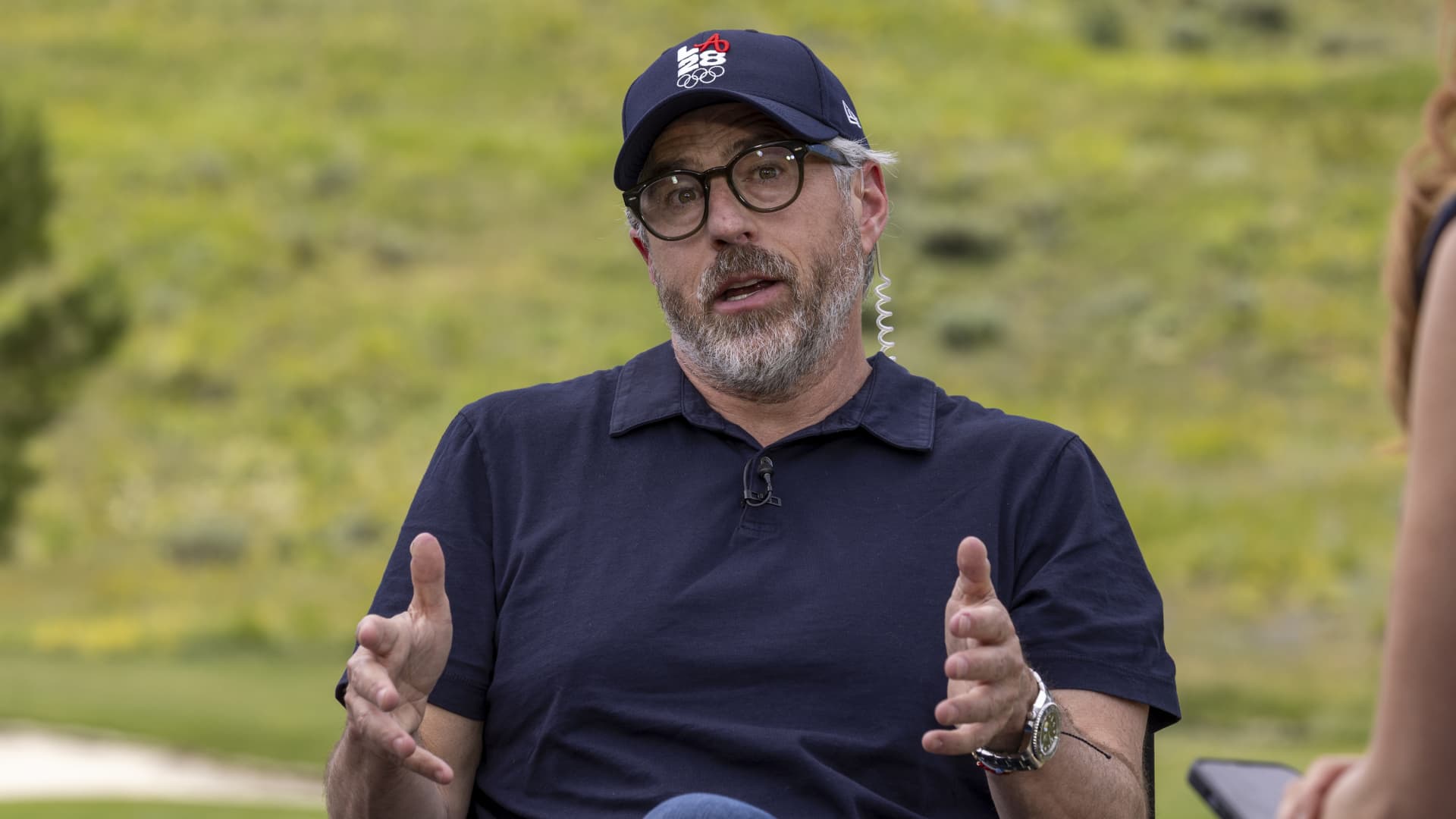 Casey Wasserman, CEO of the Wasserman Media Group, interviews during the annual Allen and Co. Sun Valley Media and Technology Conference at the Sun Valley Resort in Sun Valley, Idaho, U.S., on July 9, 2025.