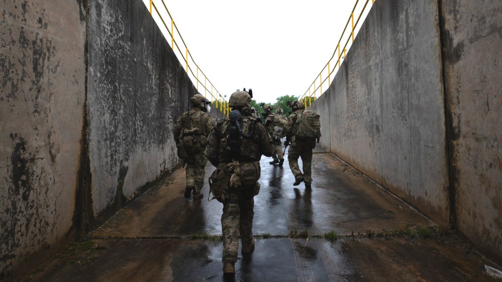 Members of the US Army’s 75th Ranger Regiment and conventional supporting forces seen during a training exercise in 2024 involving a mock raid on a nuclear facility. US Army