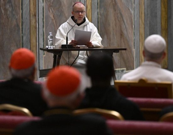 The “Substance” actress was joined in the front row by Donatella Versace, Paris Hilton, Romeo Beckham and more who were in attendance to take in new creative director Demna’s first collection for the Italian fashion house.