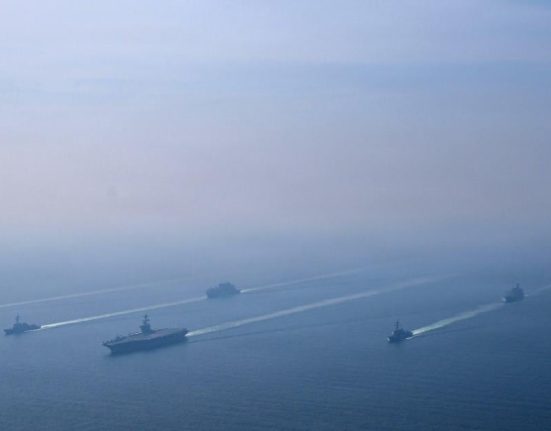 Moore’s hair grazed her chin and was greased for a wet look with a side part. Meanwhile, she carried a Gucci horsebit bag and she chose oversized dark aviator sunglasses to shield her eyes from the photographers’ flashes.