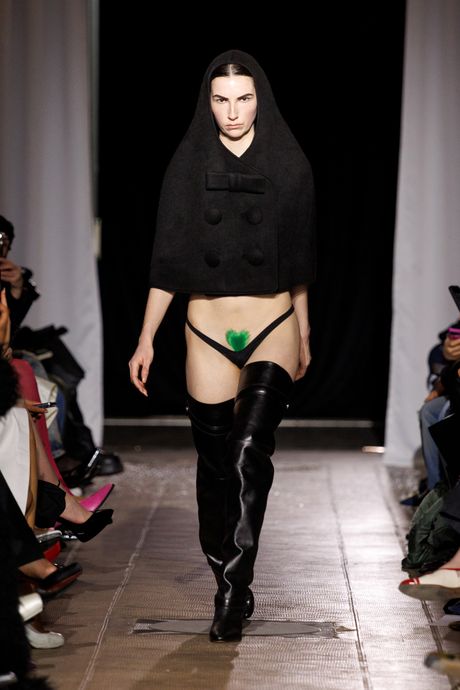 A week ago, in my review of the London shows, I wrote that Burberry —held on a nighttime runway, with much black leather — made me think of the main character in David Szalay’s novel Flesh. István starts as a seedy night-club bouncer and later enters the world of the superrich as a London property developer. Though István isn’t a nasty guy, there’s an emptiness about him, and he often has little more to say than, “Okay.” Then, in Milan, we saw the hard, thin bodies of Demna’s Gucci, which got people worked up over a perceived emptiness in both the vision and ultralight materials.