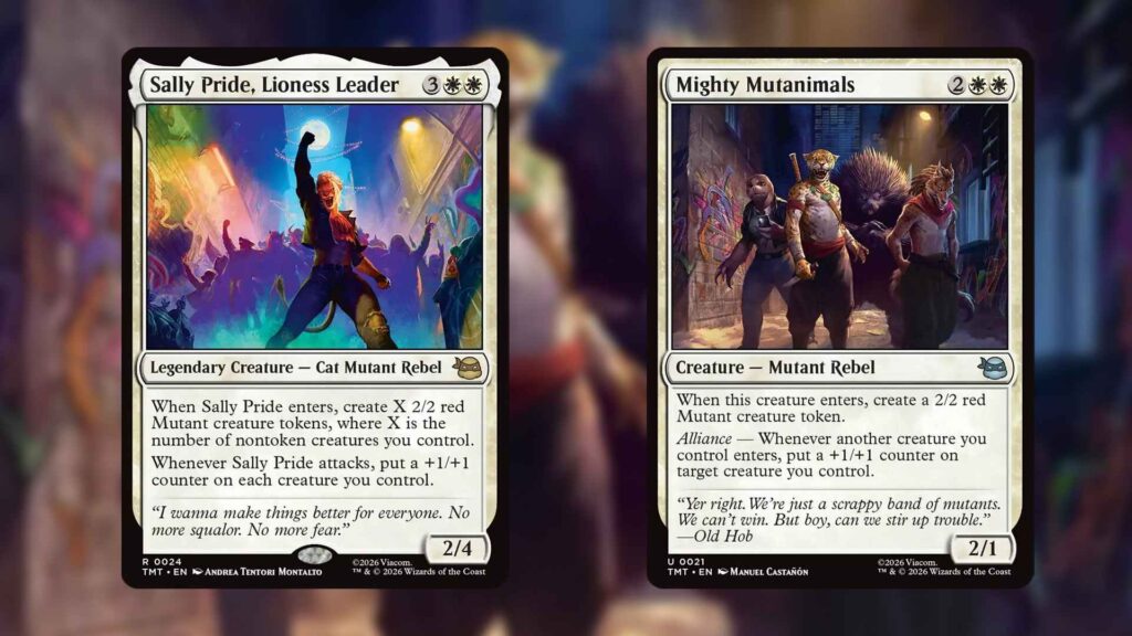 While every MTG Limited set is bound to have some broken bombs, the TMNT crossover is taking that idea to another level. According to 17lands.com‘s early TMNT Limited data, Sally Pride, Lioness Leader and Mighty Mutanimals have winrates that are higher than most cards at their rarity in any Limited set.