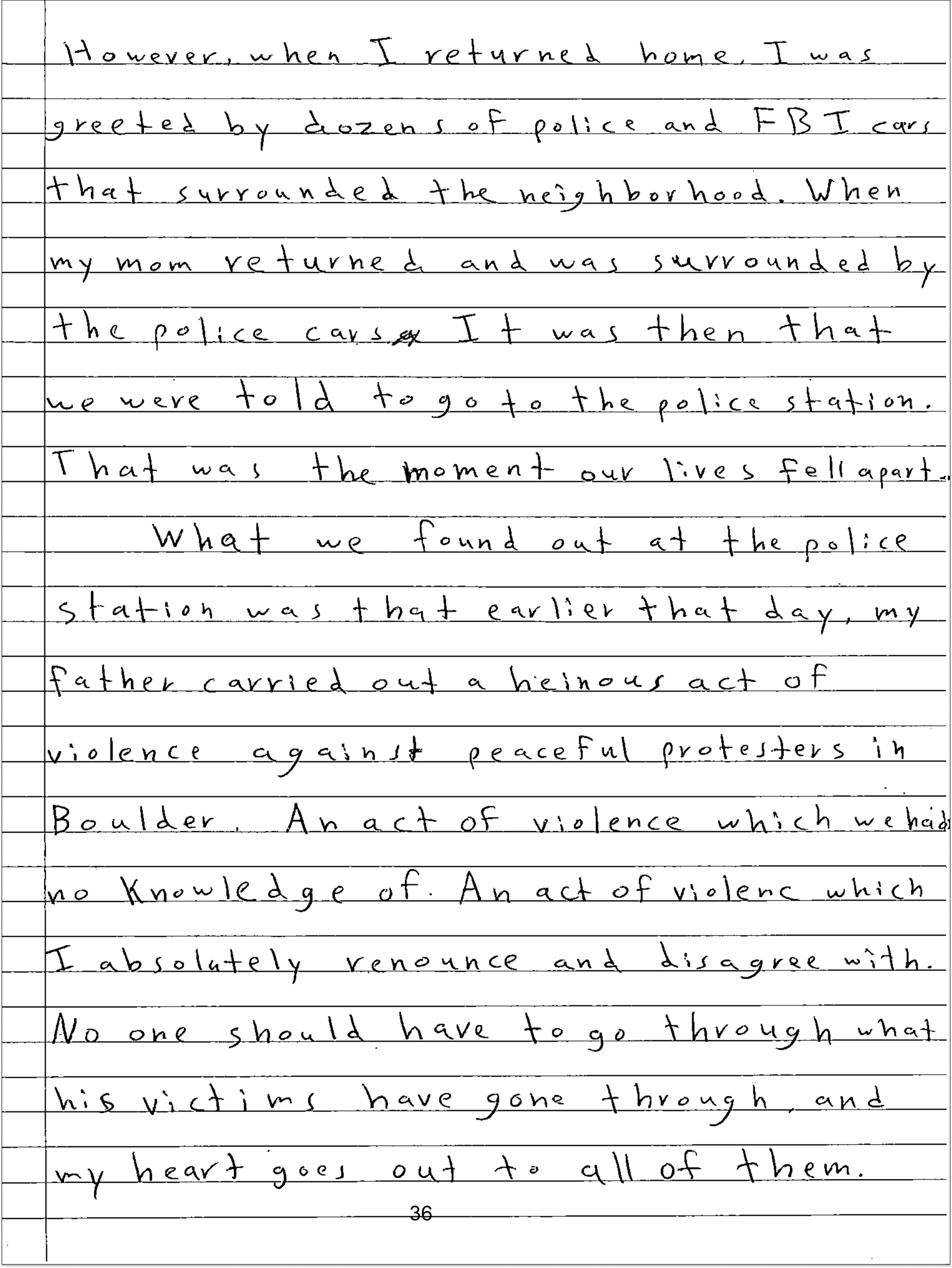 His wife, who wrote that she met her husband through an arranged marriage, and their children have repeatedly denied knowledge of his attack. They have consistently said that the father was emotionally and physically absent and barely spoke to them. The family has since disavowed the father and is no longer in contact with him, their attorney said.