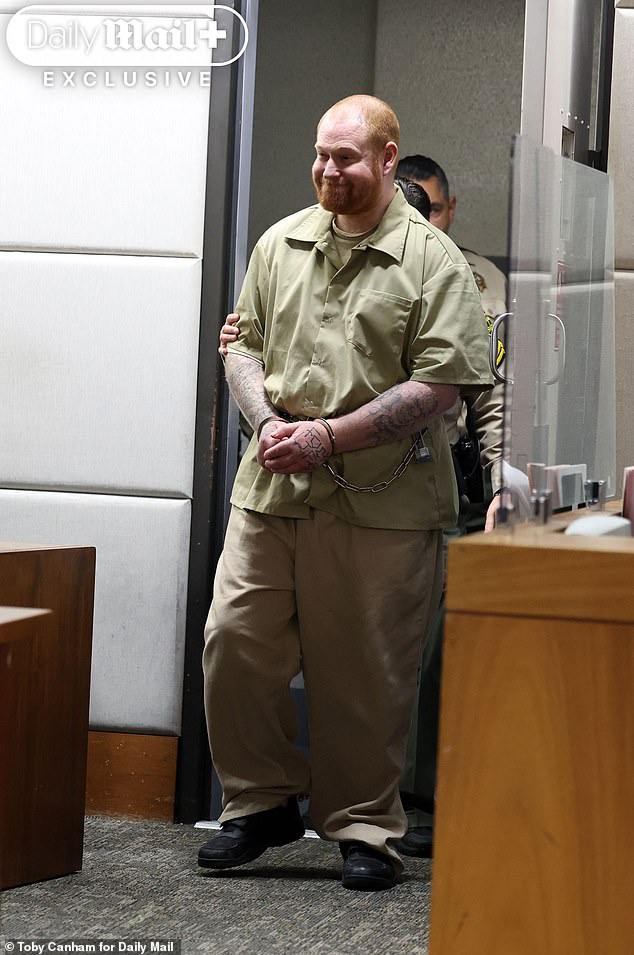 Redmond O’Neal, 41, is seen at the LA Airport courthouse where he was arraigned on Tuesday on a second amended criminal complaint in connection to an alleged crime spree in May 2018