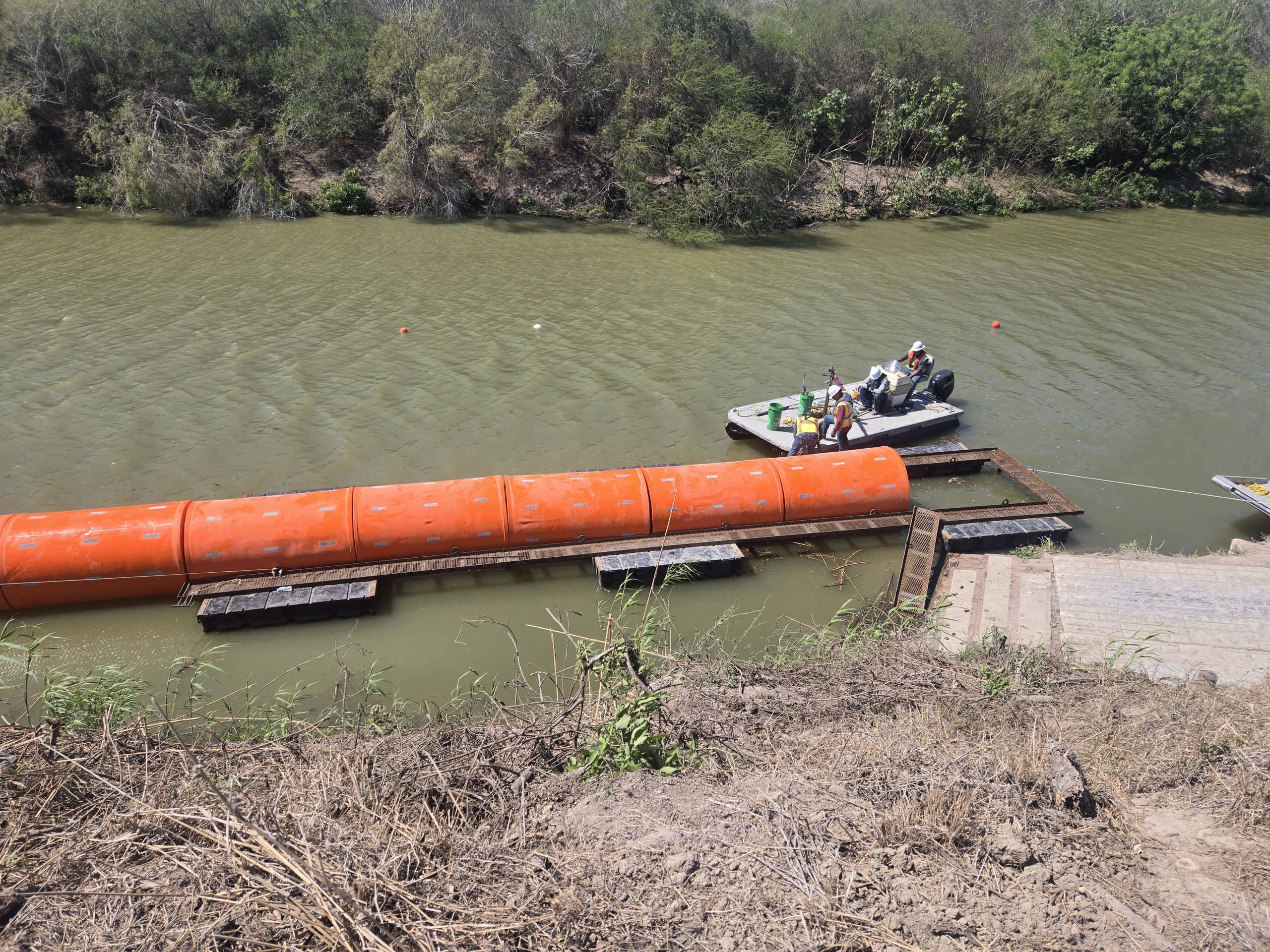 Unlike the Eagle Pass buoys, the new buoys are much larger, cylindrical and form a continuous barrier across the river.