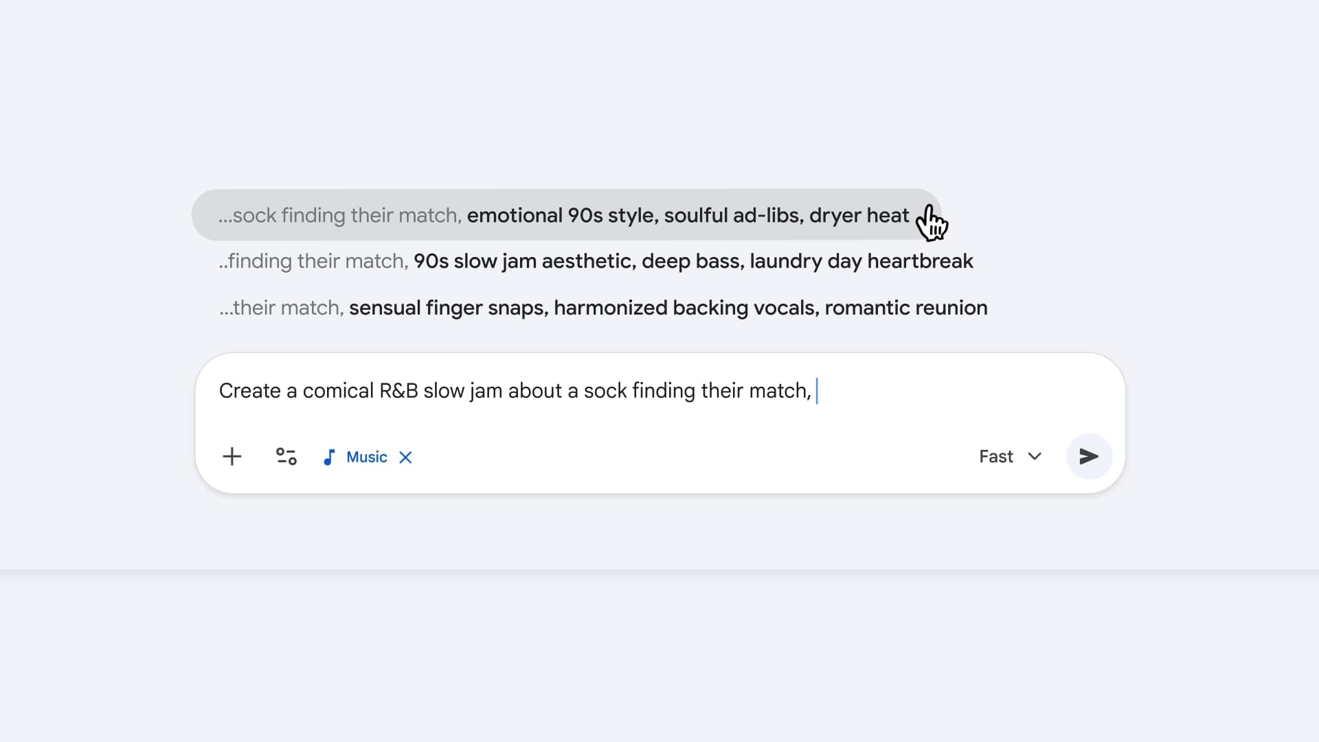 Another way to prompt is by uploading a photo or video clip that Gemini can use to “compose a track with lyrics that fit the mood perfectly.”