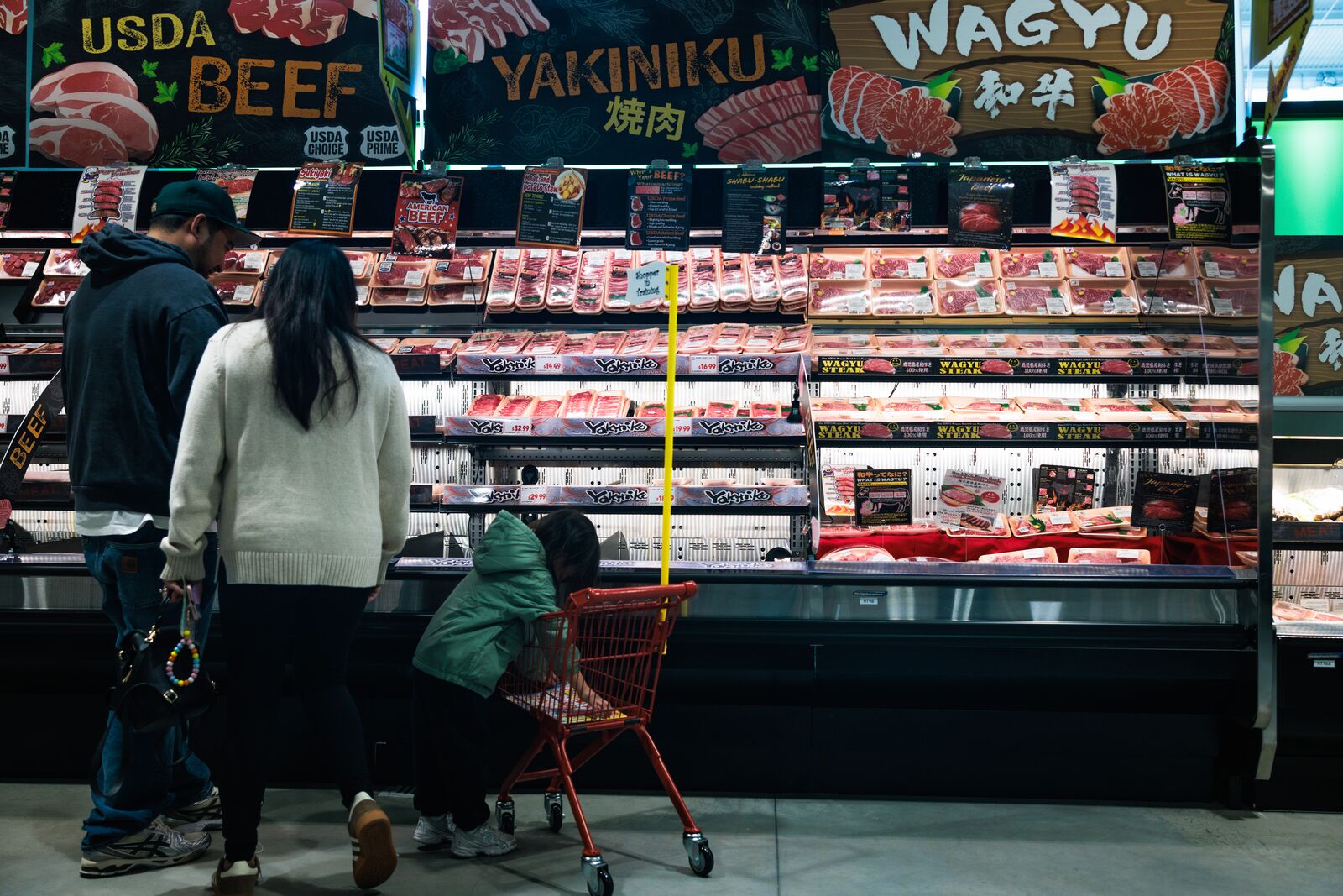 The large sliced meat section includes Kurobuta black pork and wagyu. About 90% of the beef is from the U.S., while the rest is imported from Japan, Villa says, noting that tariffs have led the company to reduce the amount of imported meat it sells; for example, the Kurobuta pork is from Iowa and Nebraska, and much of the beef is from Harris Ranch. The equipment to slice the premium beef and pork is from Japan. Similarly, while you can find Japanese-grown produce, the majority of it is grown in California. Some noteworthy items in the produce section are the Japanese yams, large stalks of Japanese green onions (Tokyo negi), and Amaou strawberries ($19.99 for three).
