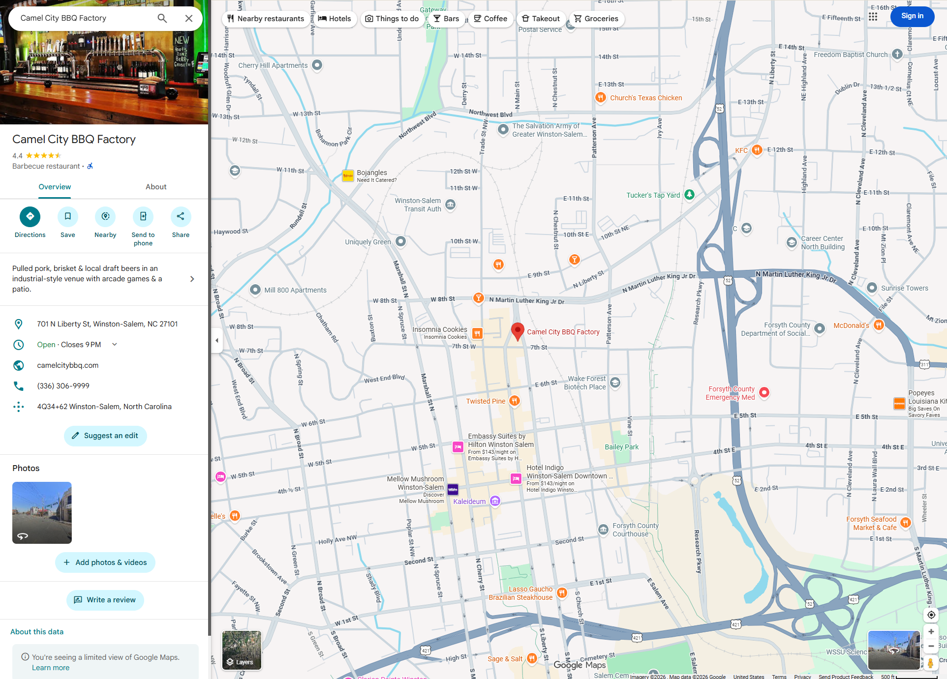 Moving over to a restaurant, there are even more differences. The signed-out Google Maps listing still shows key details such as address, hours, a phone number, and more, but it’s missing a lot of the information found on the signed-in version. That includes: