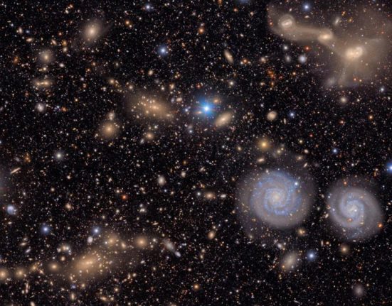 After an instrumental introduction, The Mountain introduces its unique mythology with “Moon Cave.” “The Moon Cave is that place where everything, all human ideas, come out,” Albarn says. “Whether it’s drawing a perfect circle with two sharp bits of obsidian rotating on a bow, or AI, it all comes from the back of the cave, in the shadows.”