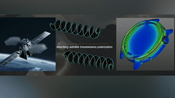 The idea here is that they can use the two antennas operating in opposite directions to match the polarization of the satellite transmission. Here, in this little animated GIF, you can see the rotation (electrically, not physically):