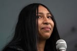 Restaurant manager Liz Gonzalez speaks with the owners of Mis Tacones restaurant in Portland, Ore. on Thursday, Jan. 29, 2026.