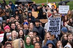 Across town, students from Roosevelt High School walked out and marched down North Lombard Street, also mirroring actions across the Pacific Northwest and the country.