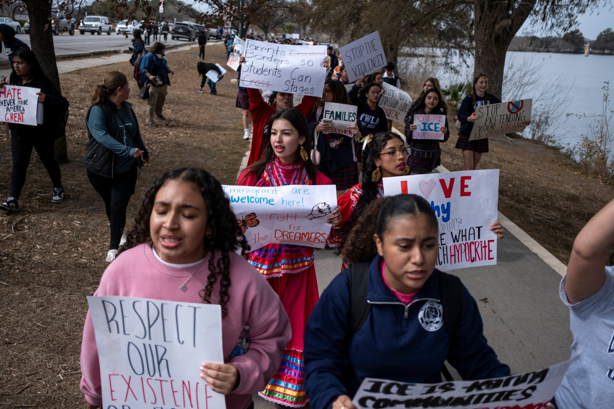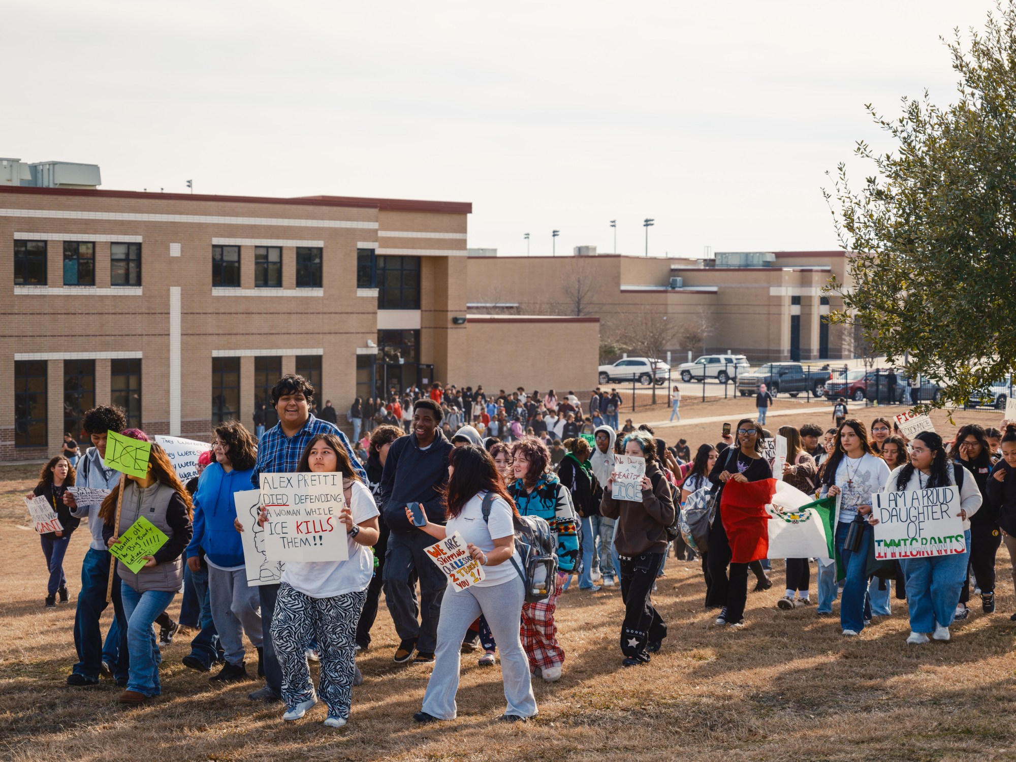 Hundreds of Texas public school students walked out of classes on Friday as part of a national movement protesting immigration enforcement in the wake of the fatal shootings of two American citizens in January by federal agents in Minneapolis.