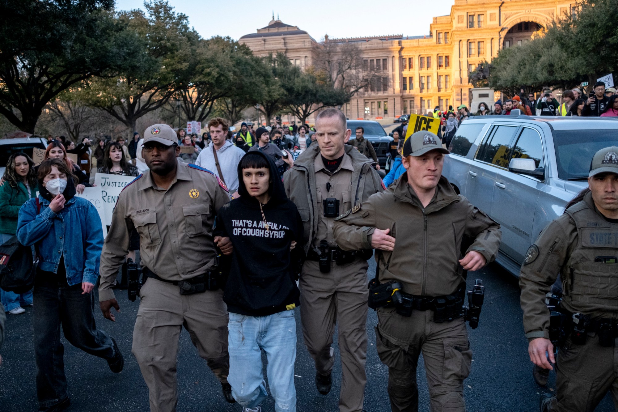 At least two people were detained by Department of Public Safety officers on Capitol grounds early on in the protest, but most of the demonstration and subsequent march through downtown Austin occurred without issue.