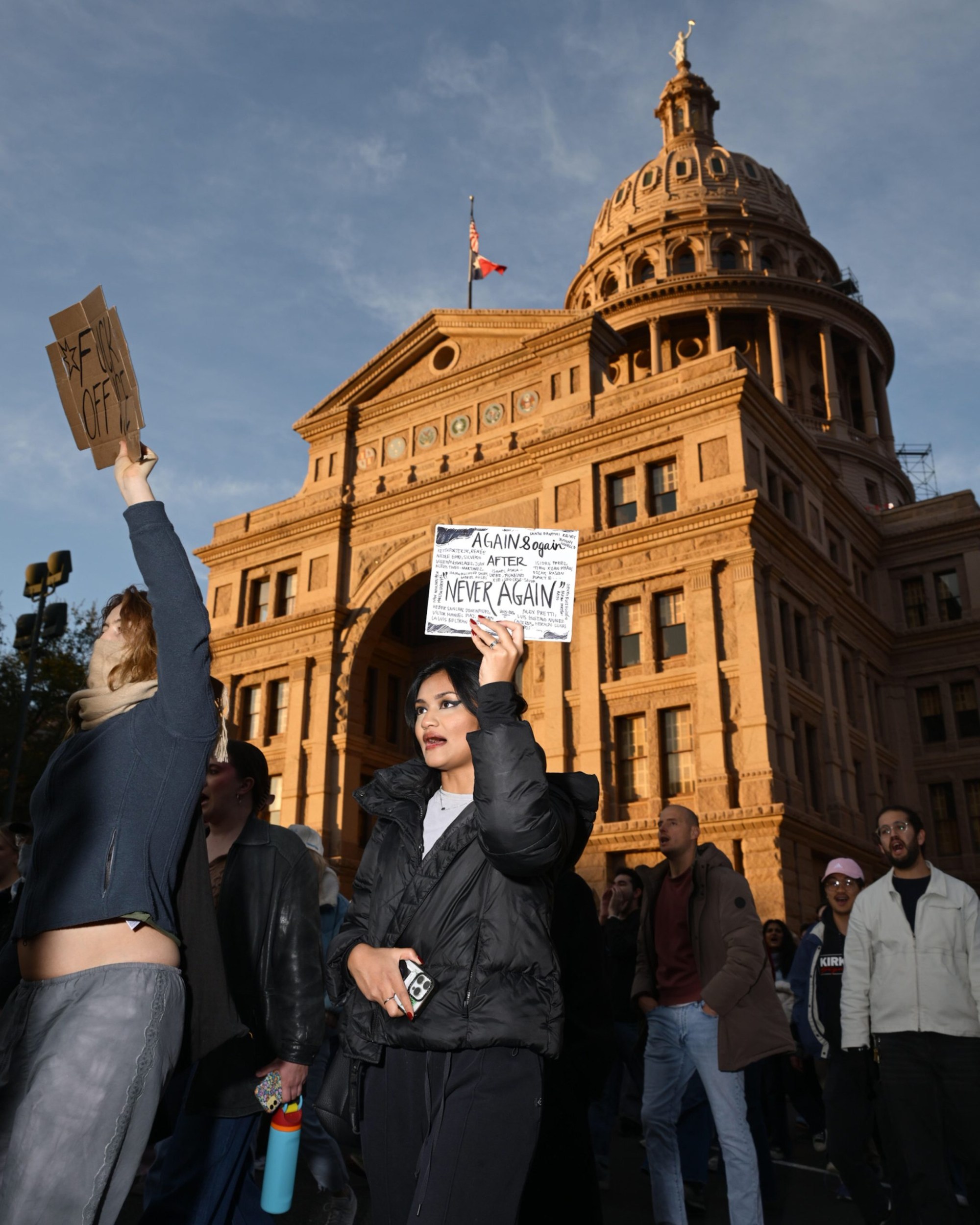 A few hundred students from the University of Texas at Austin also walked from their campus to the Capitol, joining the high school students and other citizens who were already protesting there.