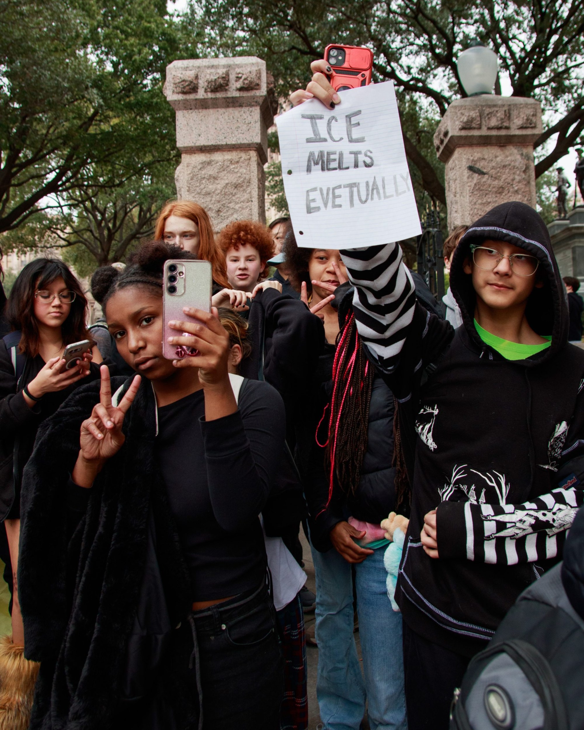 Students in Austin, Waco, San Antonio and elsewhere wielded signs and flyers protesting Immigration and Customs Enforcement officials as they walked out of classes. In downtown Austin on Friday afternoon, dozens of students could be seen heading toward the state Capitol down Congress Avenue before the start of a 5:30 p.m. protest. Austin Independent School District officers were nearby monitoring the students.