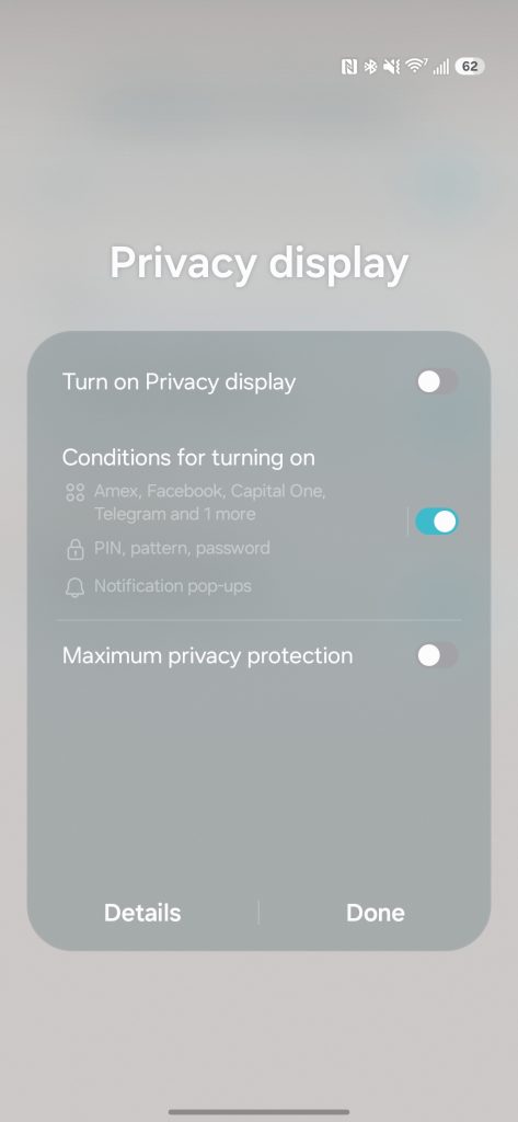 In real-world use, this is a really good feature, mostly because of how Samsung implemented it. Privacy Display works by physically adjusting how the pixels on your phone work. For every “normal” pixel, there’s another one with a “gate” that ensures the light output is focused straight ahead. When you turn on Privacy Display, the “wide” pixels simply shut off.
