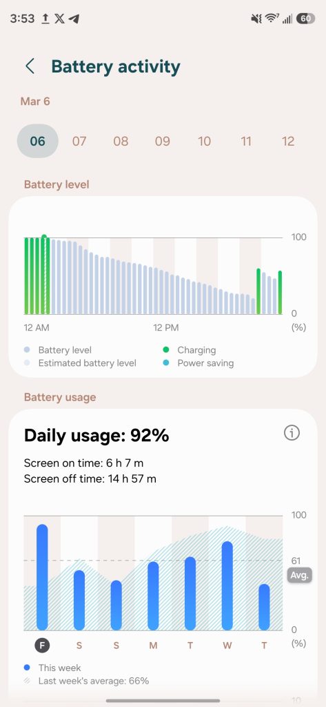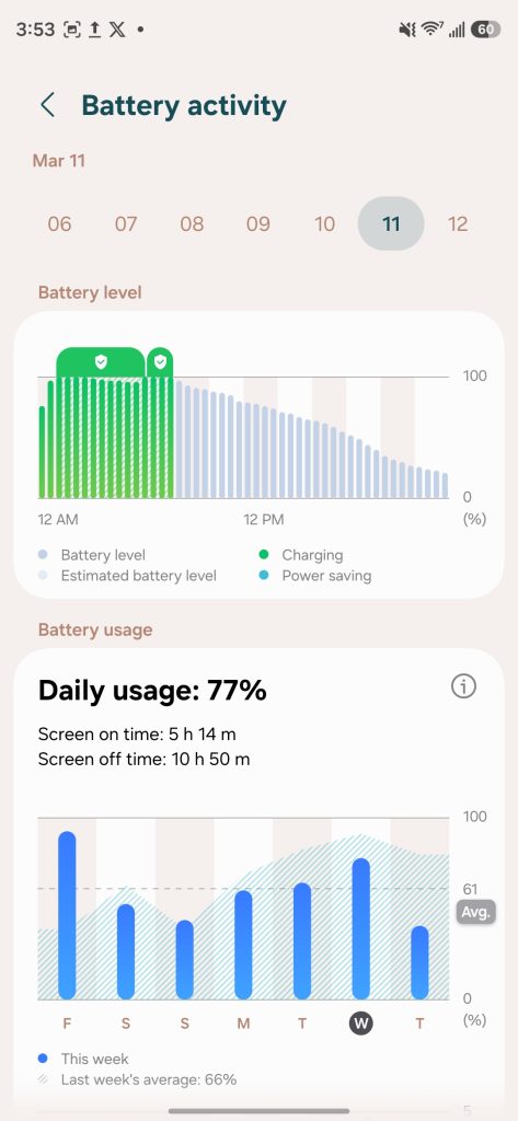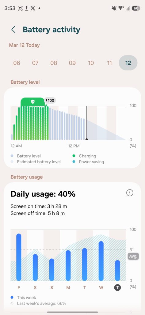 I’m easily powering through most days with the Galaxy S26 Ultra without thinking about a charger. Days with 5-7 hours of screen time and heavy reliance on cellular networks left the Ultra with at least 10-20% in the tank at bedtime, with the only “day” that I nearly killed it including a 9-hour flight home from London followed with 12 hours of chaos in the Atlanta airport.