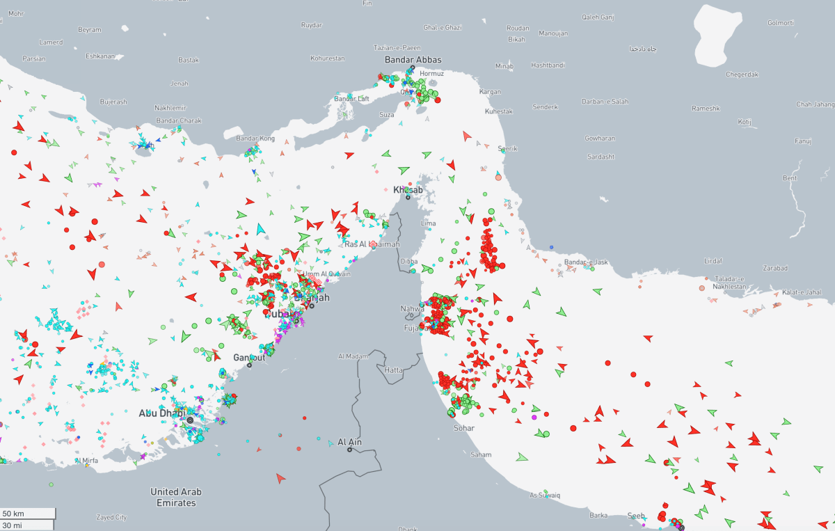 MarineTraffic: Amid reports of missile strikes and retaliatory actions across the region, several oil majors and trading houses have reportedly paused crude and fuel shipments through the strait as a precaution.”