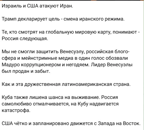 Separately, Prilepin complained that Russia is not supporting Iran now – just as several months ago it did not support Venezuela. And that Cuba may be next.