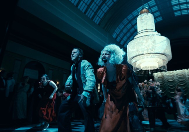 On the run and, also, screaming into the void a lot doing it, The Bride and Frank carve a trail of dead bodies that takes them from Chicago to New York, to Times Square movie palaces in which preshows label them a monstrous couple after they’ve killed a group of men that tried to assault her back in Illinois. (One plaudit for what a reported $80 million will get you: at least this film’s soundstage version of New York looks full of actual people.)