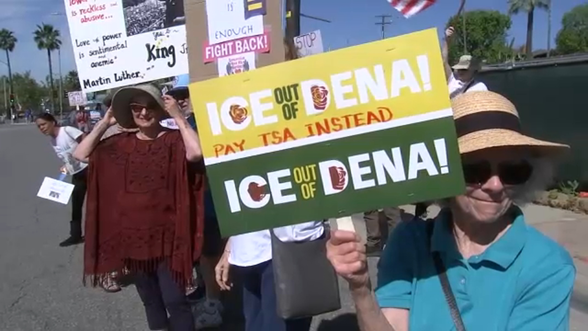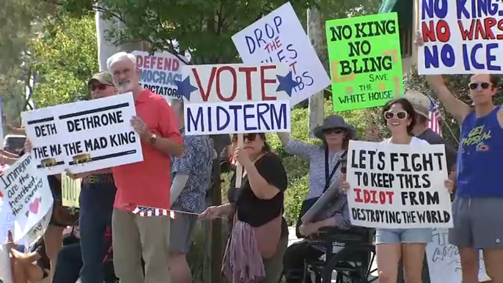 Some held signs protesting ICE and the war in Iran, while others called for a change in power.