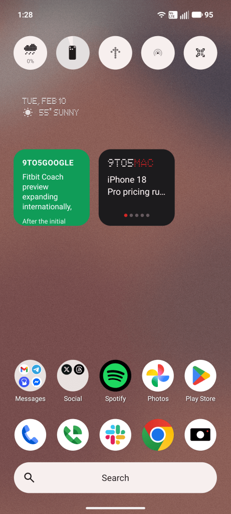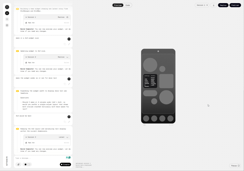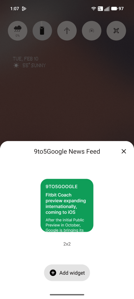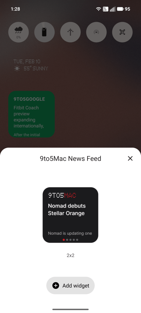 A simpler idea was pulling the latest stories from 9to5Google and 9to5Mac on the same homescreen widget. Or at least, I thought it would be simple. The Playground refused to create a 4×2 widget, instead just sticking with a 2×2 size that simply isn’t big enough for anything like this. Some of the early builds from other users show 4×2 sizes and Nothing says it’s possible, but the Playground just wasn’t cooperating with me.