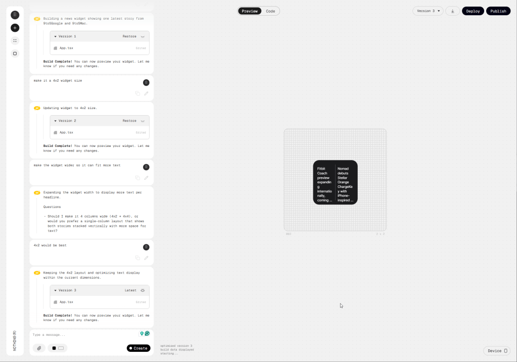 Nothing’s “Playground” is where you’ll use AI to develop ideas, with a prompt starting the process. You simply describe what functionality you want, and it goes from there. Nothing’s example is a widget that looks at the weather and your calendar to help you find the best days & times to get in a run, with the prompt also taking into consideration the length of the run.