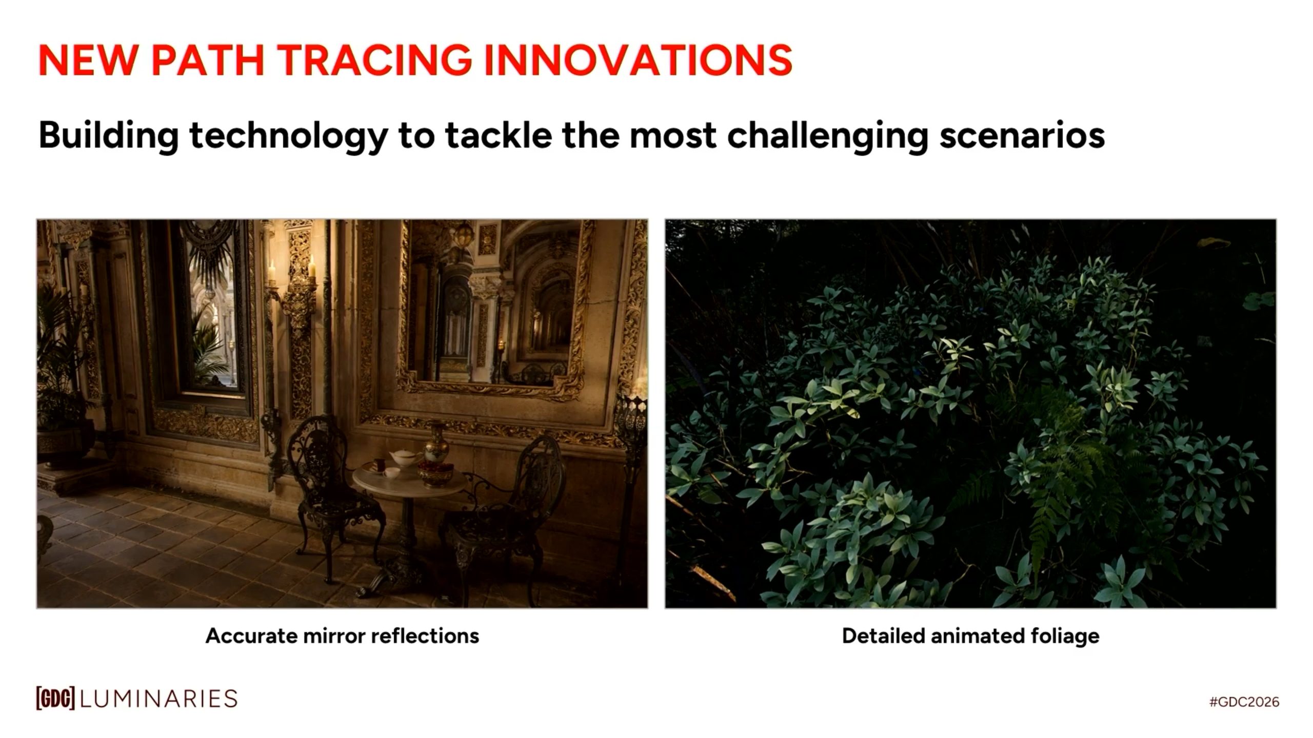 If we were to brute force, we don’t have that. Moore’s law is dead. We are not going to see a 100 times improvement in my lifetime in terms of silicon. So we’re going to be relying upon algorithmic ingenuity and fully leaning into AI to cross that chasm between what’s attainable now, with real-time graphics in games, and what’s attainable in film rendering. So I would say that Path Tracing is really the gold standard today in state-of-the-art rendering for games.