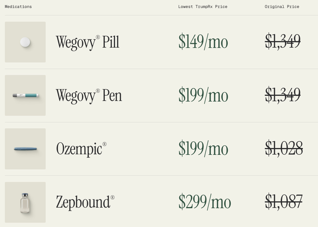 GLP-1 medications — among the highest-spend drugs in the U.S. — have dramatic price reductions on TrumpRx.gov.