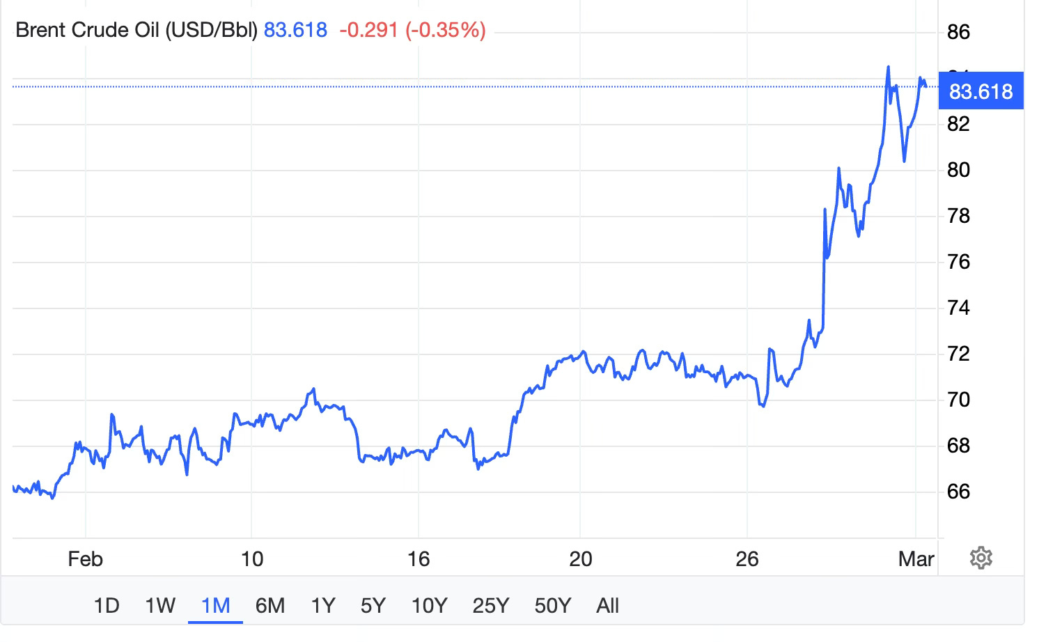 Indeed, it’s hard to understand why oil prices haven’t risen even more. “Why has oil not hit $100 a barrel?”, asks the Financial Times. The best answer seems to be that even now traders are betting that the Strait of Hormuz won’t stay closed for more than a few days. I hope I’m wrong, but I expect the strait to remain closed for weeks despite Trump’s assurances.