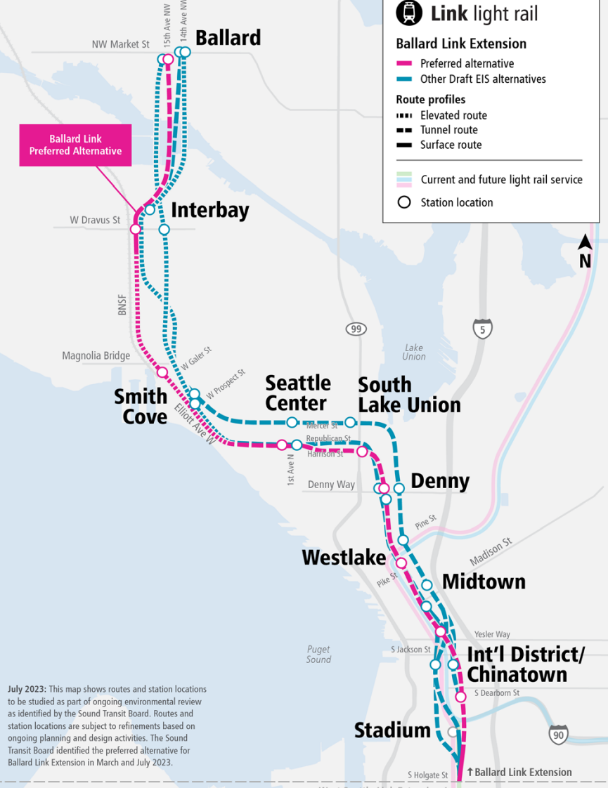 But the fact that all three scenarios would phase Ballard Link, stopping at either Seattle Center or Smith Cove, is a reflection of the project’s massive scale and scope compared to the other ST3 light rail projects. Even with the implementation of cost-saving measures, Ballard Link could cost more than $17 billion, more than twice as much as other extensions like Tacoma Dome or Everett Link.