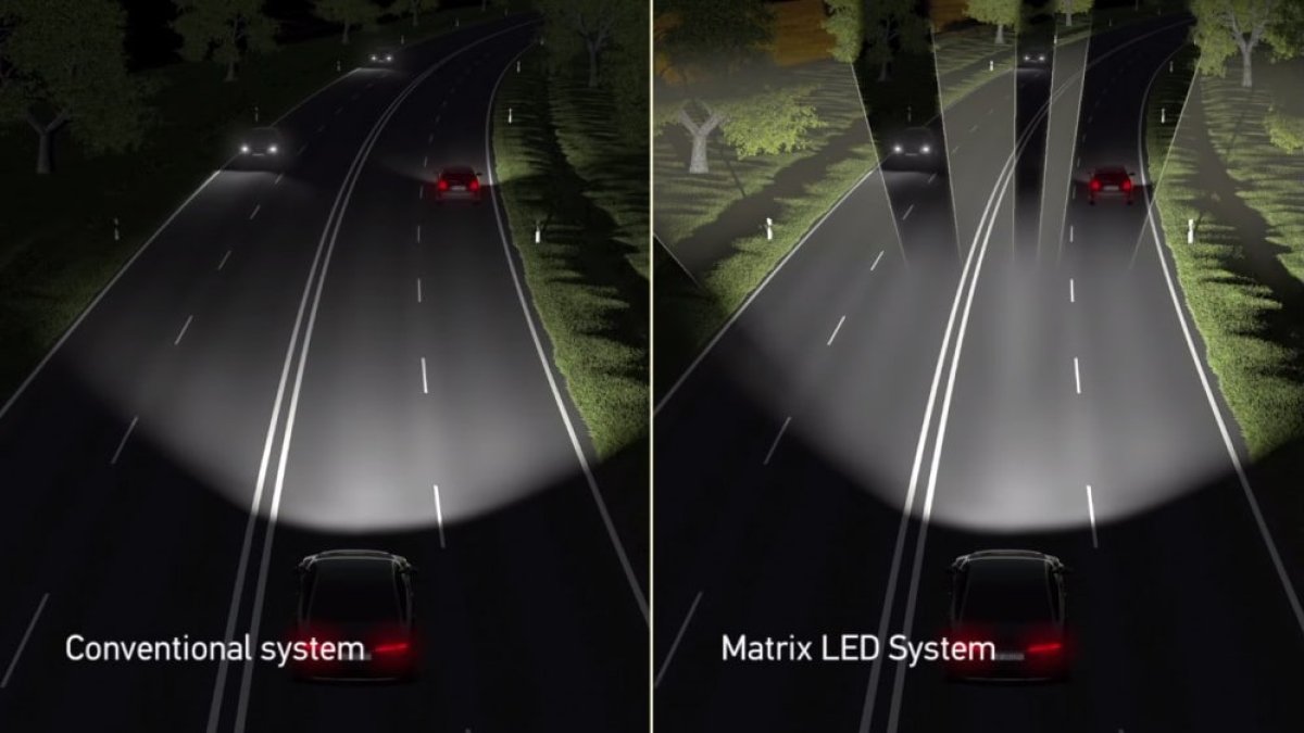 Adaptive Headlights take lighting a step further by keeping high beams on longer and selectively dimming areas with other vehicles. These headlights are made up of an array of pixels, and the vehicle is able to turn off individual light pixels around oncoming vehicles to reduce glare for those drivers, leaving you with an almost entirely lit-up road.