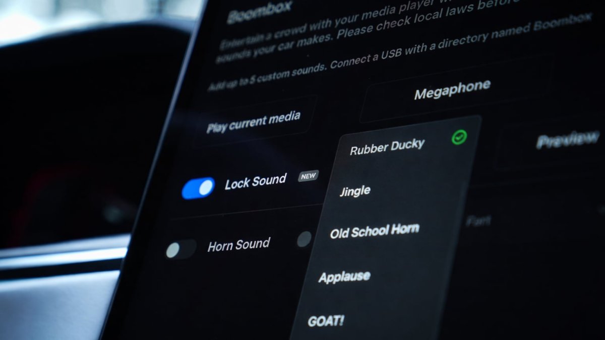 Back in 2023, Tesla added the ability to replace the standard “honk” when locking the car with custom sounds. Owners can choose from pre-loaded sounds like the Light Cycle from the Tron franchise by going to Toybox > Boombox > Lock Sound, or even upload their own via a USB drive.