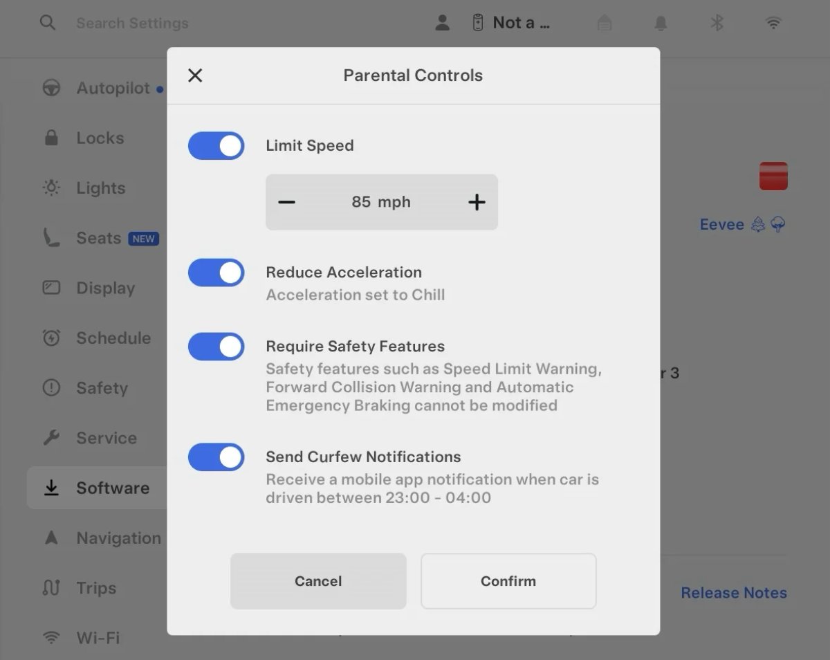 The introduction of Parental Controls allows parents to keep their teens safer by setting a maximum speed limit, reducing acceleration and preventing safety critical features from being turned off.