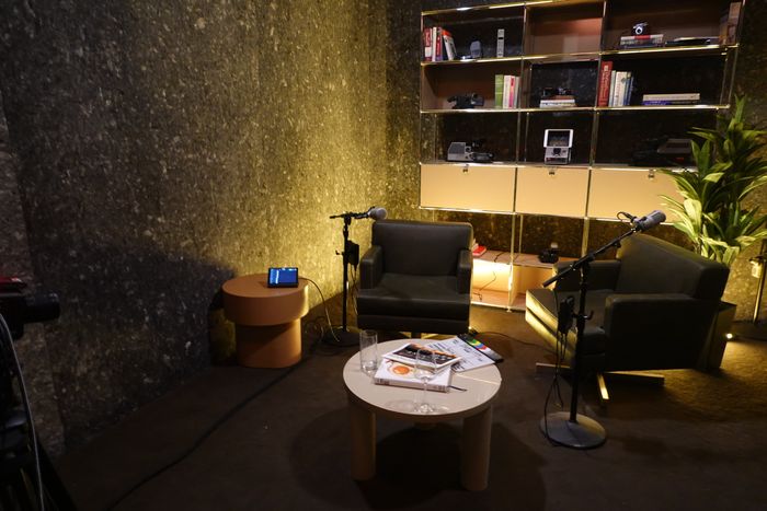 The business card is dead, the traditional office is dying, and these kinds of base camps for wellness influencers and dating podcasters may be on the rise. (WSA comes to mind and was also a topic of discussion among guests.) After all, these so-called creators are full-time workers in a professionalized industry, hustling for ad deals and event appearances but often without a place to do it beyond their bedrooms or the crowded streets of the West Village. The WeWorks of yesteryear aren’t suited to labor that sometimes needs tech support, soundproofing, and a certain dose of glamour. By contrast, the Lighthouse was designed so members can shoot everywhere, so the space feels like a map of what’s currently eating our attention: A slick kitchen on the top floor has a camera rig on the ceiling for downward shots of hands chopping onions. A “salon” on the ground floor embeds the camera in the mirror of a room that might pass for a walk-in closet at a high-end condo — a setup that anyone shooting a bronzer tutorial might prefer over the shared bathroom of a Bushwick rental. Down the hall, past an atrium, is a soundproofed studio set up with a camera, since all podcasts have video now. Hit record, finish a shoot, and a tablet helps drop the file into a laptop nearby — no setup, no lugging equipment, and if anything goes wrong, a nearby desk staffed with A/V types is there to help. On Wednesday, guests milling through these rooms could hit a button on their virtual map, earn a point for showing up, and see their name rising on a leaderboard blinking on a flat-screen by the open bar. But no one seemed to be actively checking.