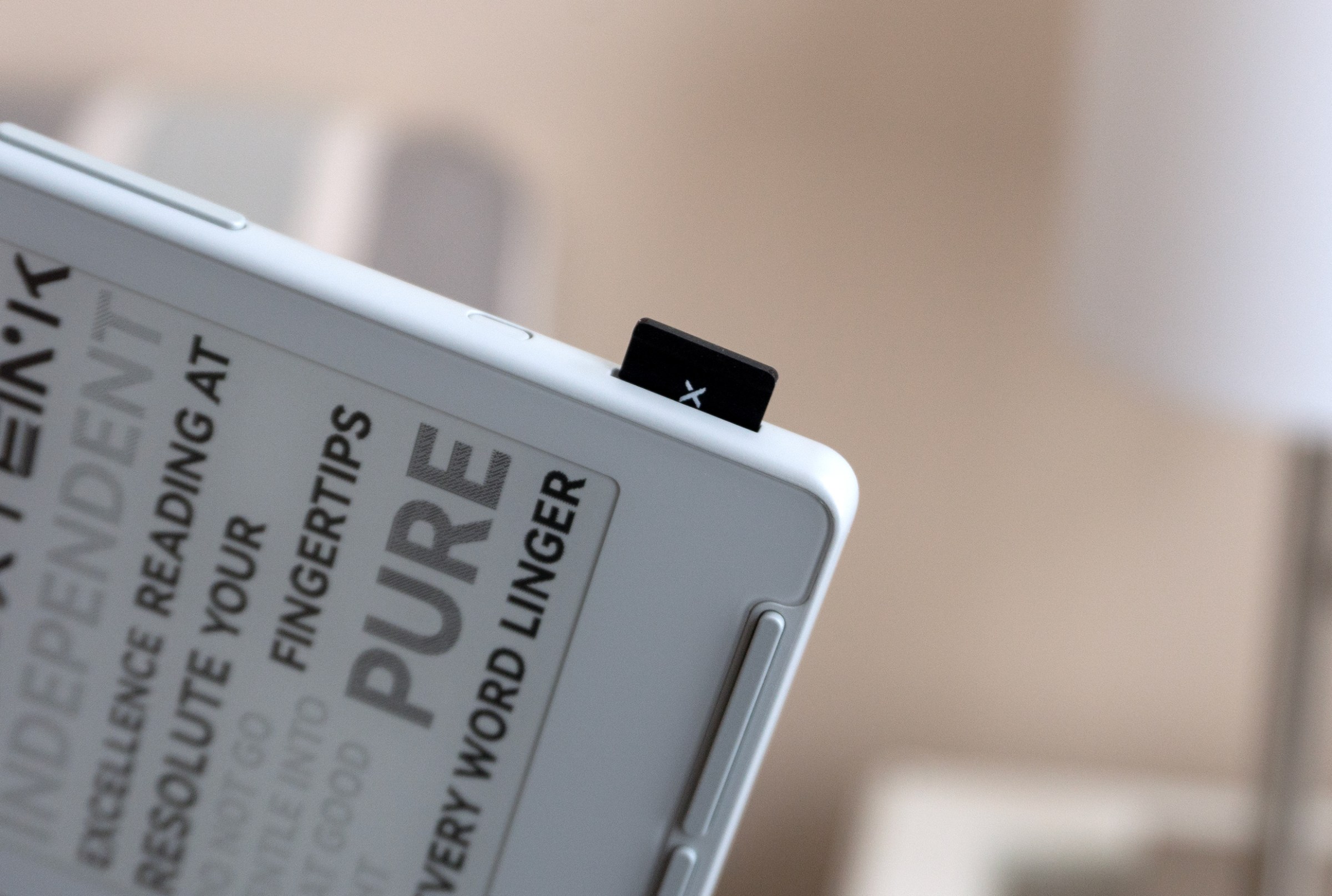 The only storage on the X4 is an included microSD card that can be difficult to remove as it sits deep inside the e-reader when inserted.