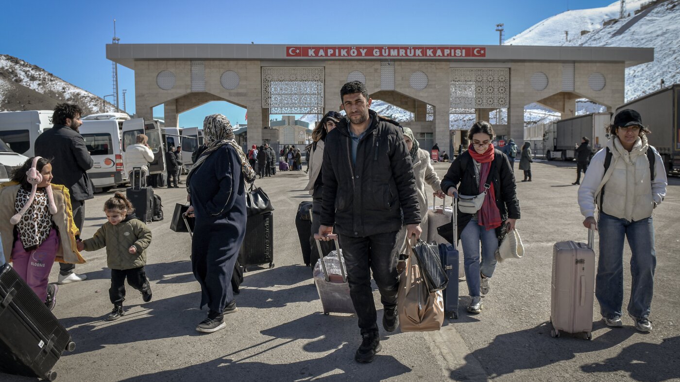 Iranian nationals arrive in Turkey after passing through the Razi-Kapiköy border crossing in Van, northeastern Turkey, on Tuesday, a day after Turkey and Iran mutually suspended day-trip crossings at their border as Israeli-U.S. strikes continued to pound the Islamic Republic.