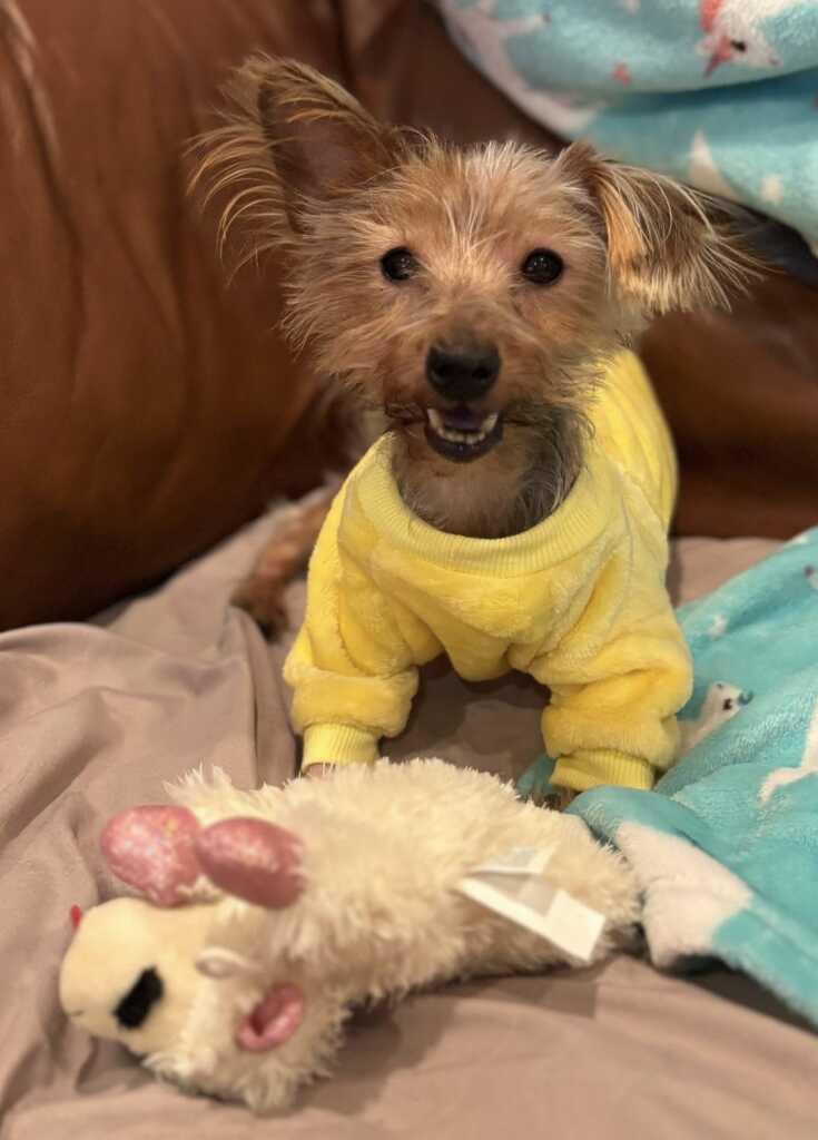 Apple the Yorkie whose story was shared last Monday is doing fantastic. In just one week, she has blossomed from matted, starving, and unsure into the most confident, bright, and loving dog you’ll ever meet. She wants to be held and snuggled 24/7 (and isn’t shy about vocalizing this desire), she LOVES playing with stuffies (pink sparkly Lamb Chop is her favorite), and she recently discovered that belly rubs are bliss.