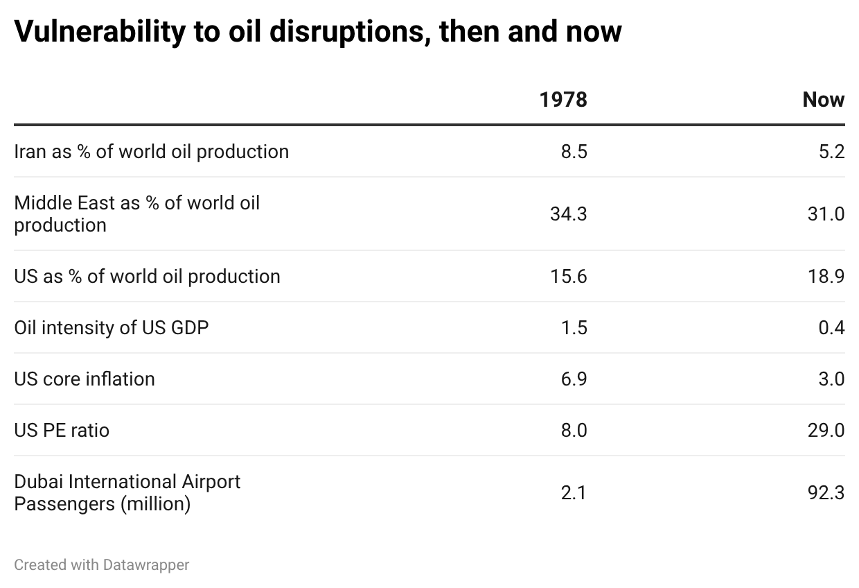 But it’s worth asking why the world economy looks less vulnerable to instability in Iran now than it did in 1979. The main explanation isn’t what you may think. And it’s also worth asking what new vulnerabilities have emerged over the last 47 years.