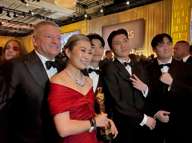 The other big winner of the evening, Netflix, took home seven Oscars including three craft awards for “Frankenstein,” their biggest haul since the pandemic 2021 Oscars, the year of “Mank” and “My Octopus Teacher.” Co-CEO Ted Sarandos posed with the “KPop Demon Hunters” Animated Feature and Song winners. He said he figured getting jabbed by the Oscar host was a good thing, even if O’Brien suggested he was in a theater for the first time. (Sarandos is a certified cinephile.) Truth is, Hollywood considers Sarandos more of a good guy since he lost the Paramount Warners bid. Why? They think David Ellison is a far worse option. Ask Jane Fonda.