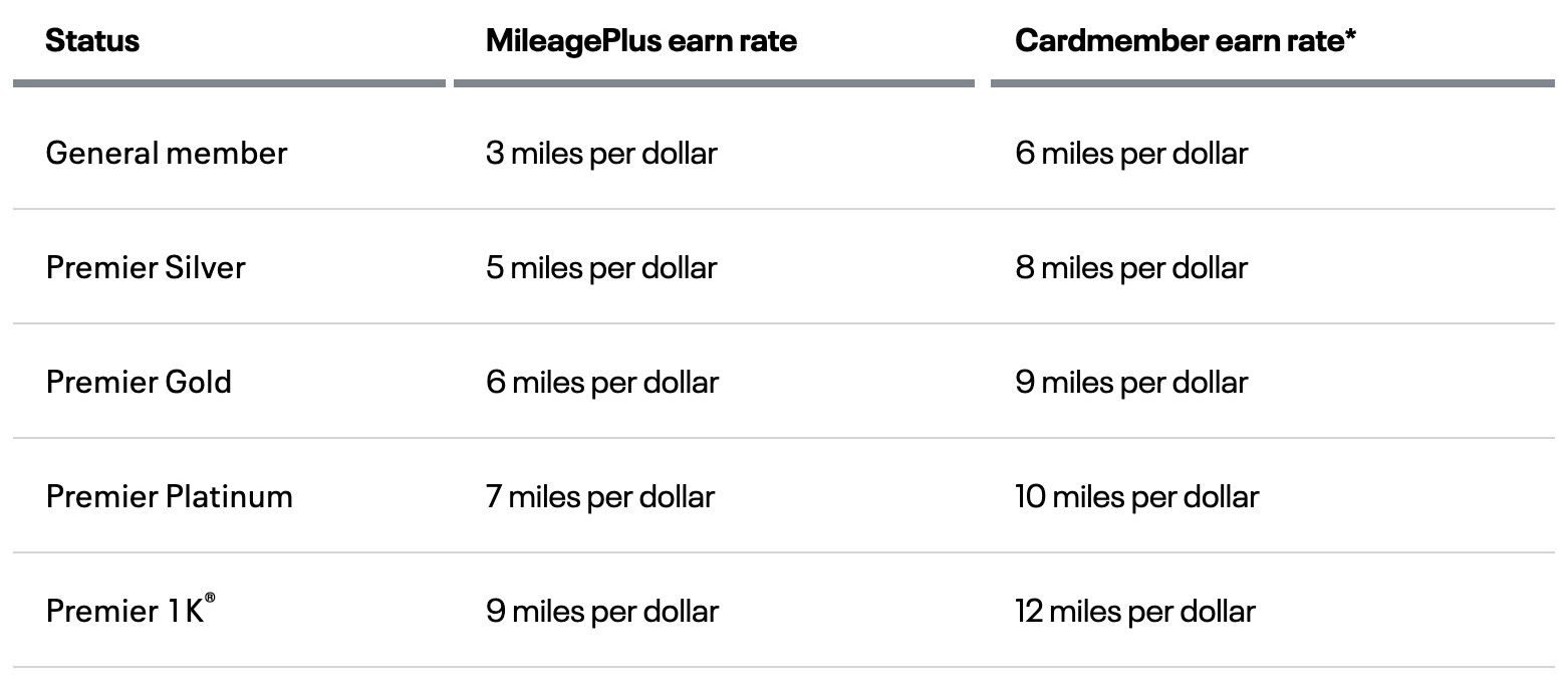 For context, below are the MileagePlus earn rates for tickets booked through April 1, 2026.